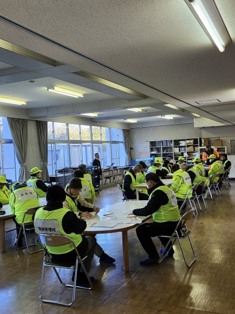 防災防犯委員会では、令和8年2月1日(日)午前9時から11時まで、佐八小学校で避難所運営訓練及び災害用給水デモを行いました。31人の参加がありました。前日に南海トラフ地震が発生、多くの住民が佐八小学校体育館に避難し、翌朝を迎えたとの想定のもと、佐八学区まちづくりの会委員が集まり、班別(総務班、施設管理班、情報管理班、衛生班、救護福祉班、物資管理班)に役割分担を行い、訓練しました。昨年までは初期行動訓練を行ってきましたが今回はさらに一歩進んで取り組みました。訓練終了後、伊勢市水道課による災害用給水デモを行っていただきました。